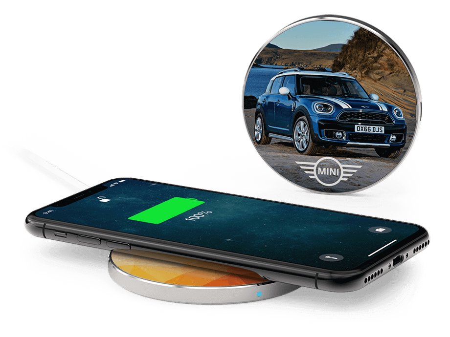 感應充電器是新一代設備充電器,可讓您為啟用Qi的設備充電,而無需將電纜插入手機或平板電腦。 我們的Cirque 款式可以銘刻您的Logo,網址或您喜歡的任何其他品牌資訊。